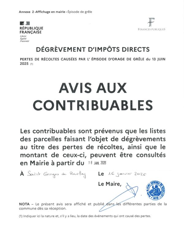 Site de la commune de Saint-Georges-de-Rouelley | Non classé | Divers | A la une | Avis aux contribuables