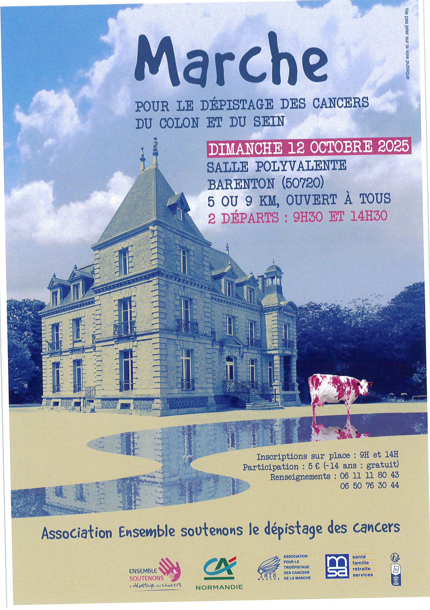 L’Association “Ensemble Soutenons le Dépistage des Cancers” espère un maximum de concitoyens à venir participer à la marche en faveur du dépistage des cancers, le dimanche 12 octobre à Barenton.