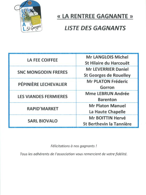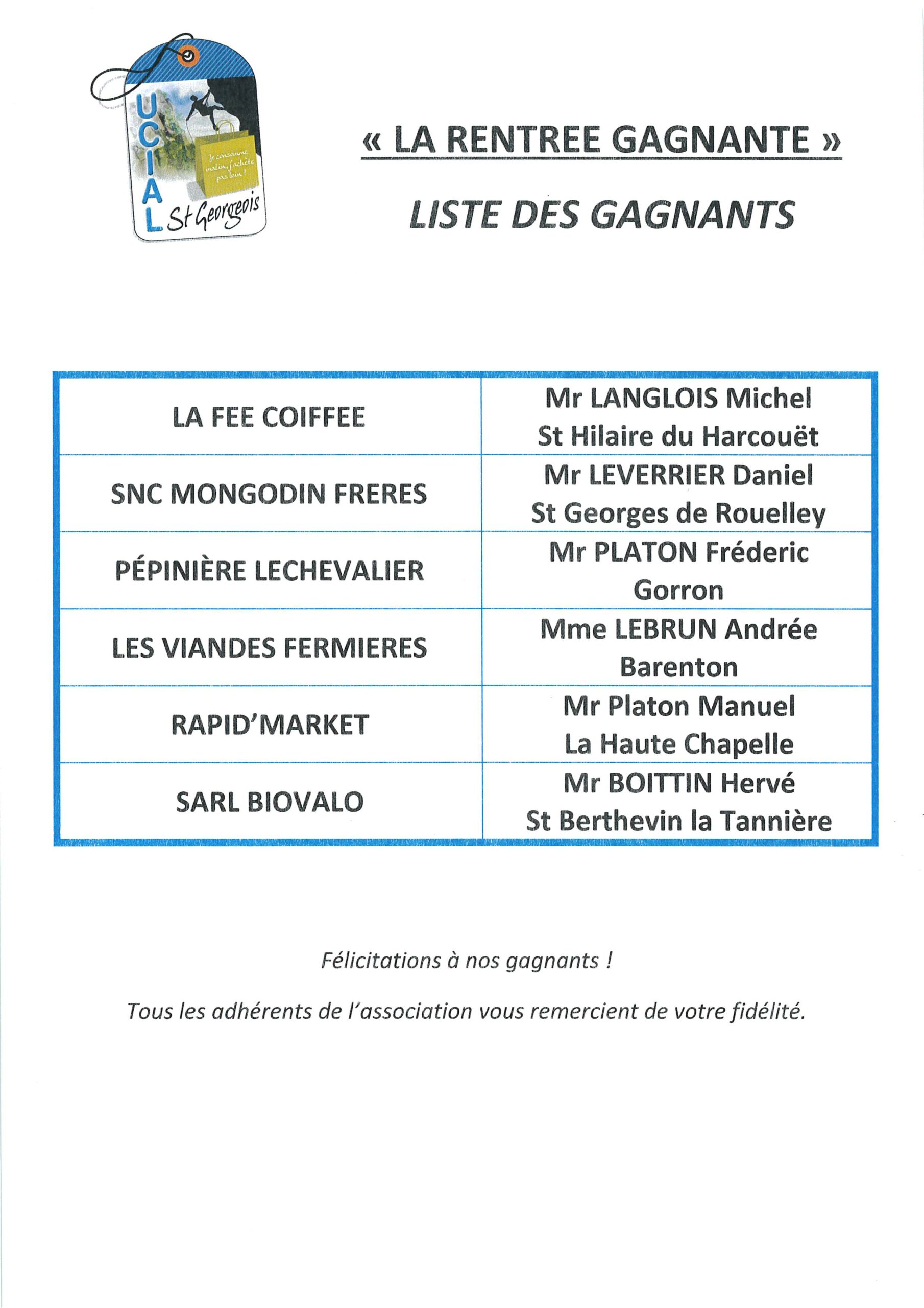 Gagnants de la rentrée gagnante